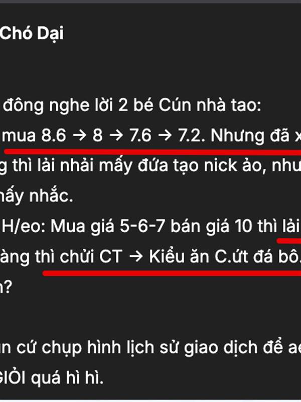 Hàng giá nào cũng có người kẹt, vol thì ko có mà ko hiểu sao hô hào múc con này làm gì xong cp ko chạy lại lên chửi om sòm. Nếu chịu cắt lỗ cp sẽ chạy, còn ôm thì chấp nhận om vốn 6 tháng nữa.