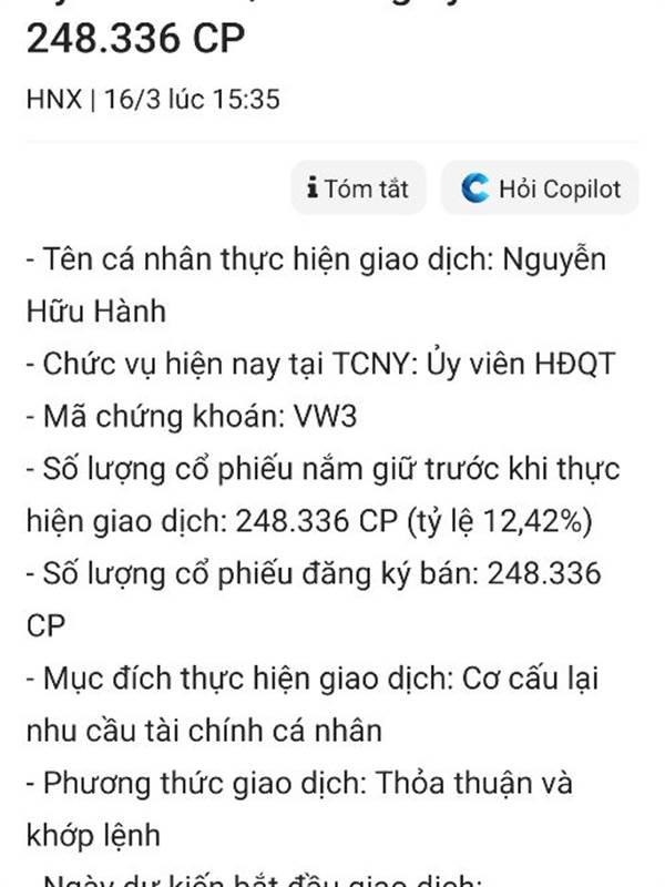 Có cổ đông lớn bán ran 248.336 cp, chắc là sang tay thôi