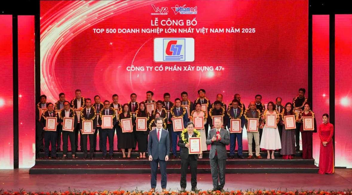 Tại lễ công bố Top 500 Doanh nghiệp lớn nhất Việt Nam năm 2025 (VNR500) và Top 100 Doanh nghiệp kiến tạo tương lai Việt Nam (VNR FUTURE 100), Công ty Cổ phần Xây dựng 47 (CC47) vinh dự được xướng tên trong bảng xếp hạng VNR500 năm 2025, đánh dấu 18 năm liên tiếp Công ty giữ vững vị trí trong top 500 Doanh nghiệp tư nhân lớn nhất Việt Nam.
