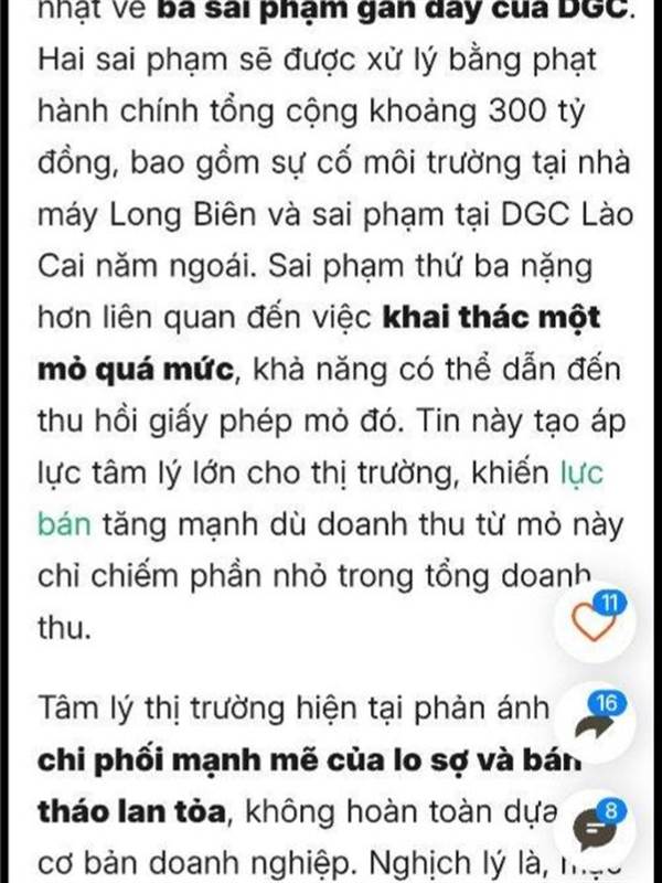 Chính khoảng trống ấy – khoảng trống thông tin – mới là thứ gieo sợ hãi nhanh nhất. Khi doanh nghiệp im lặng, thị trường sẽ tự lấp đầy bằng tin đồn. Người ta thì thầm về chính sách thuế xuất khẩu phốt pho có thể thay đổi, về những rủi ro pháp lý chưa lộ diện của dự án, về sự dịch chuyển âm thầm nào đó trong cấu trúc cổ đông lớn.