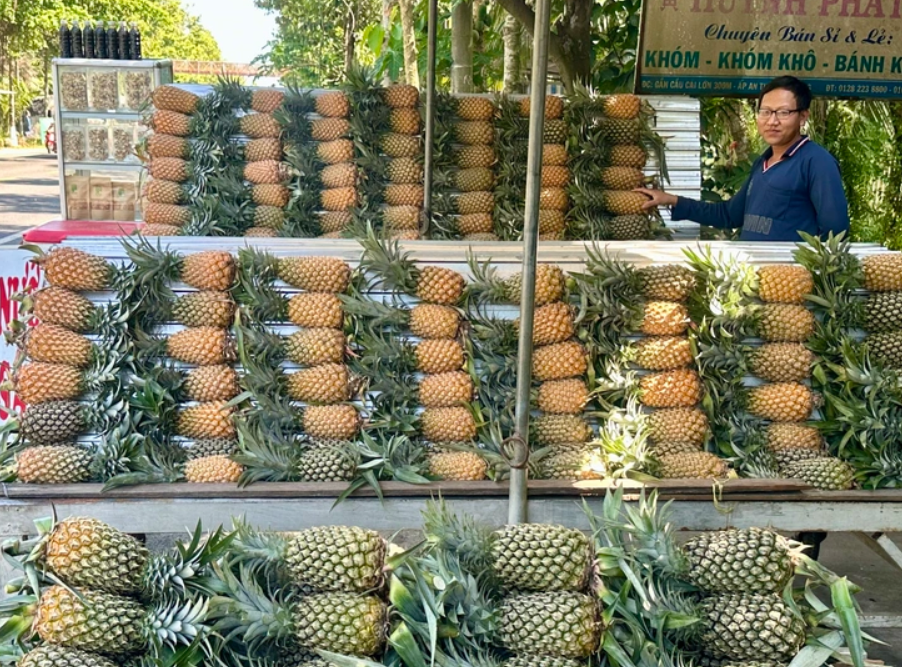 Tại các điểm thu mua và bán lẻ khóm khu vực chân cầu sông Cái Lớn, nhiều tiểu thương cũng xác nhận nguồn cung khóm năm nay ít hơn hẳn so với các năm trước. Chỉ một số nhà vườn chủ động xử lý cho khóm ra trái đúng dịp cận Tết, song việc thu hoạch gặp khó do thiếu nhân công.