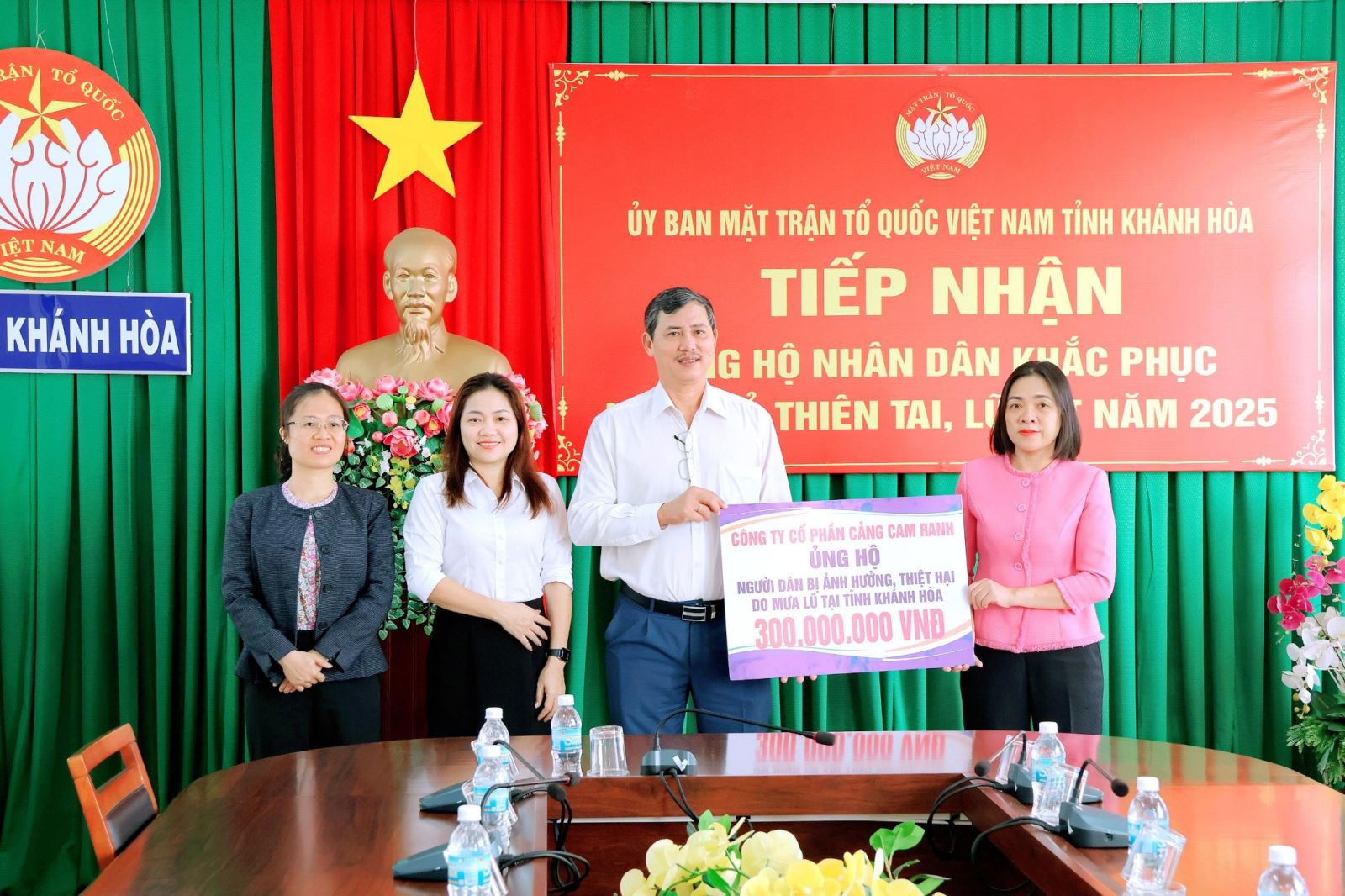 Đại diện UBMTTQVN tỉnh Khánh Hòa tiếp nhận 300.000.000 đồng ủng hộ người dân khắc phục hậu quả mưa lũ từ Lãnh đạo Cảng Cam Ranh