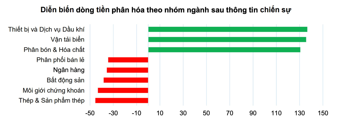 Nhiều ngành ghi nhận dòng tiền phân hóa mạnh sau thông tin chiến sự. (Nguồn: VCBS)