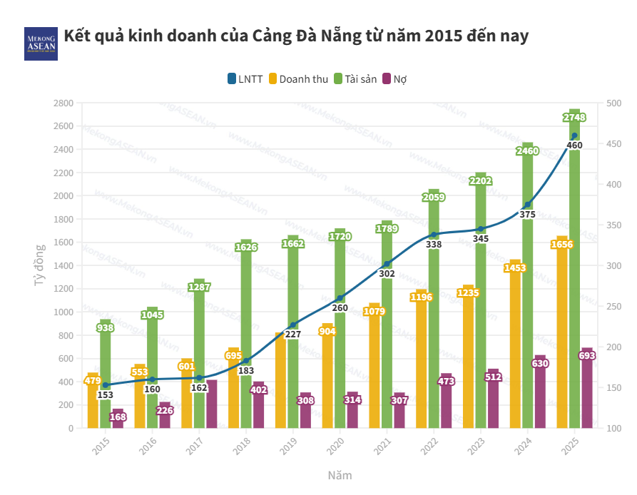 Năm 2025, Cảng Đà Nẵng ghi nhận tổng lợi nhuận trước thuế đạt 460 tỷ đồng, tăng 22,6% so với con số 375 tỷ đồng của năm 2024.