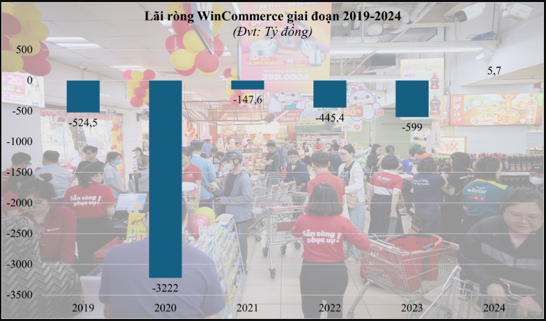 Trong năm 2024, WinCommerce - chủ chuỗi siêu thị WinMart, WinMart+, báo lãi ròng 5,74 tỷ đồng. Đây là kết quả tích cực so với mức lỗ gần 600 tỷ đồng năm 2023.