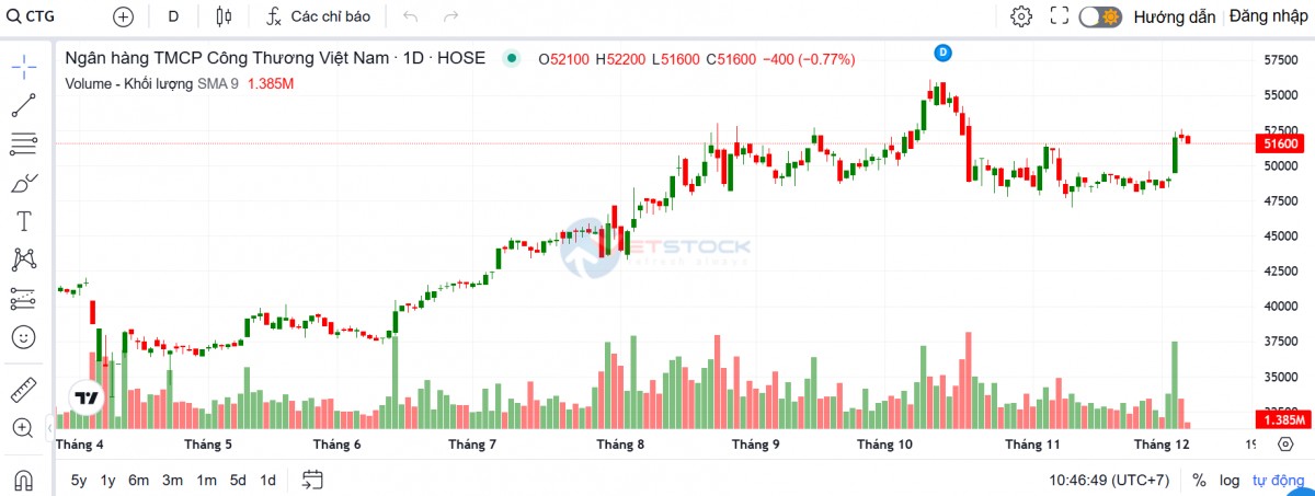 Cổ phiếu CTG được định giá lại: ACBS tăng 25% mục tiêu giá
