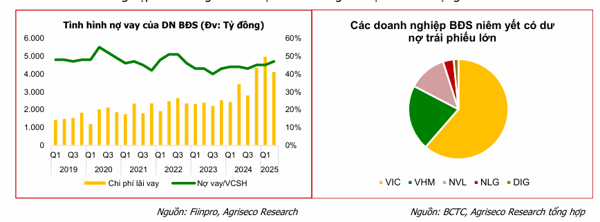 Về dư nợ trái phiếu doanh nghiệp khoảng 44 nghìn tỷ đồng, Agriseco cho biết tập trung ở các tên tuổi lớn như VIC, VHM, NVL, NLG, DIG; nhiều doanh nghiệp phát hành mới hoặc cơ cấu lại các lô trái phiếu nhằm tăng vốn trung dài hạn. Nhìn chung, cấu trúc tài chính của nhóm doanh nghiệp BĐS đang dần ổn định hơn sau giai đoạn siết tín dụng và tái cơ cấu.
