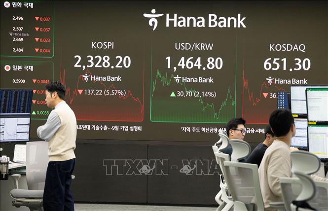 Bảng chỉ số chứng khoán tại Seoul, Hàn Quốc. Ảnh tư liệu: THX/TTXVN