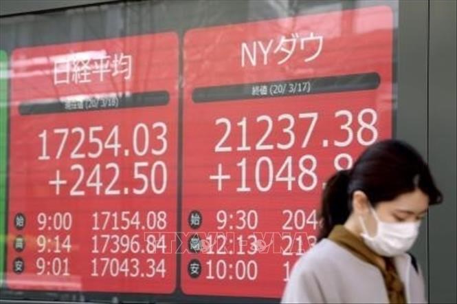 Bảng chỉ số chứng khoán tại Tokyo, Nhật Bản. Ảnh: Kyodo/TTXVN