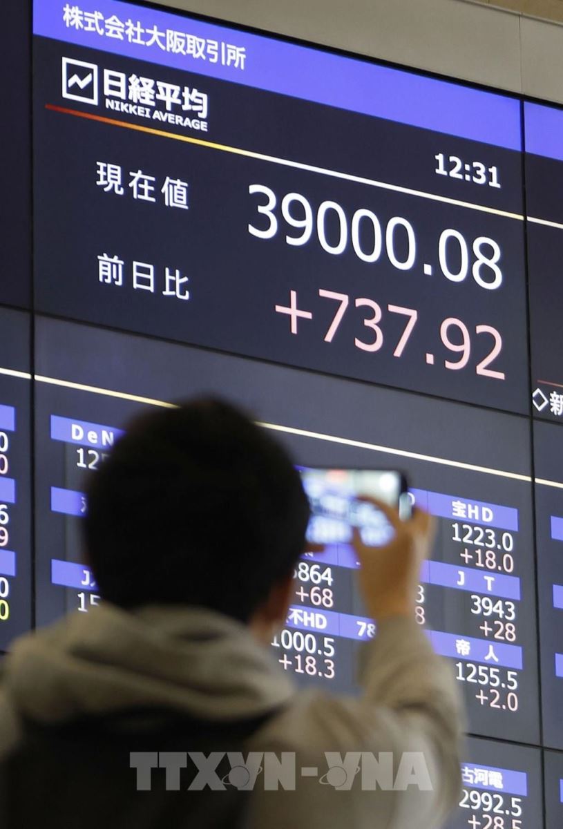 Chứng khoán châu Á theo chân đà tăng kỷ lục trên Phố Wall. Ảnh: TTXVN phát