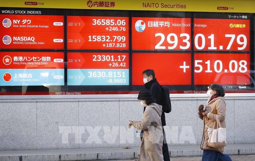 Bảng chỉ số chứng khoán tại Tokyo, Nhật Bản. Ảnh: TTXVN phát