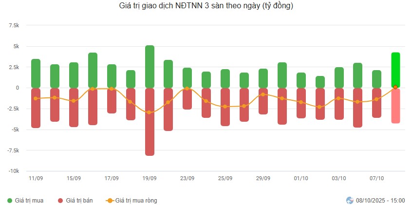 Khối ngoại ngừng bán ròng trong phiên ngày 8-10. Nguồn: VietStock