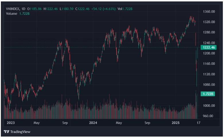 Tuy nhiên, tâm lý thị trường nhanh chóng được cải thiện sau khi Tổng thống Mỹ lên tiếng trấn an giới đầu tư và Nhà Trắng công bố quyết định tạm dừng áp thuế đối ứng trong vòng 90 ngày. Động thái này được giới phân tích đánh giá là mở ra dư địa cho các vòng đàm phán thuế quan tích cực hơn, trong đó có cả Việt Nam.