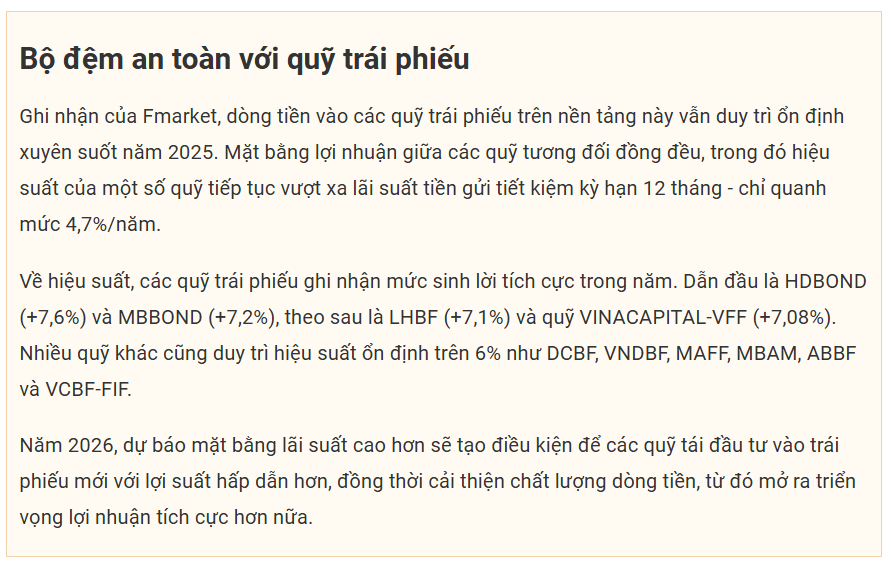 Fmarket, đối tác chiến lược đang phân phối gần 50 sản phẩm quỹ mở của các công ty quản lý quỹ hàng đầu Việt Nam, vừa công bố báo cáo hiệu suất thị trường quỹ mở năm 2025 và dự báo 2026.