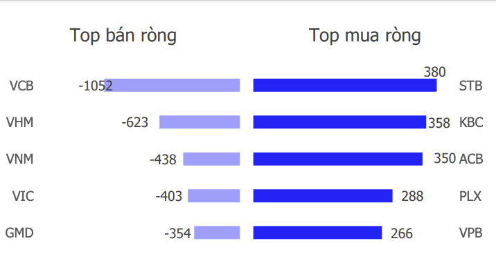 Top cổ phiếu mua/bán ròng của khối ngoại - Nguồn: Chứng khoán Kirin