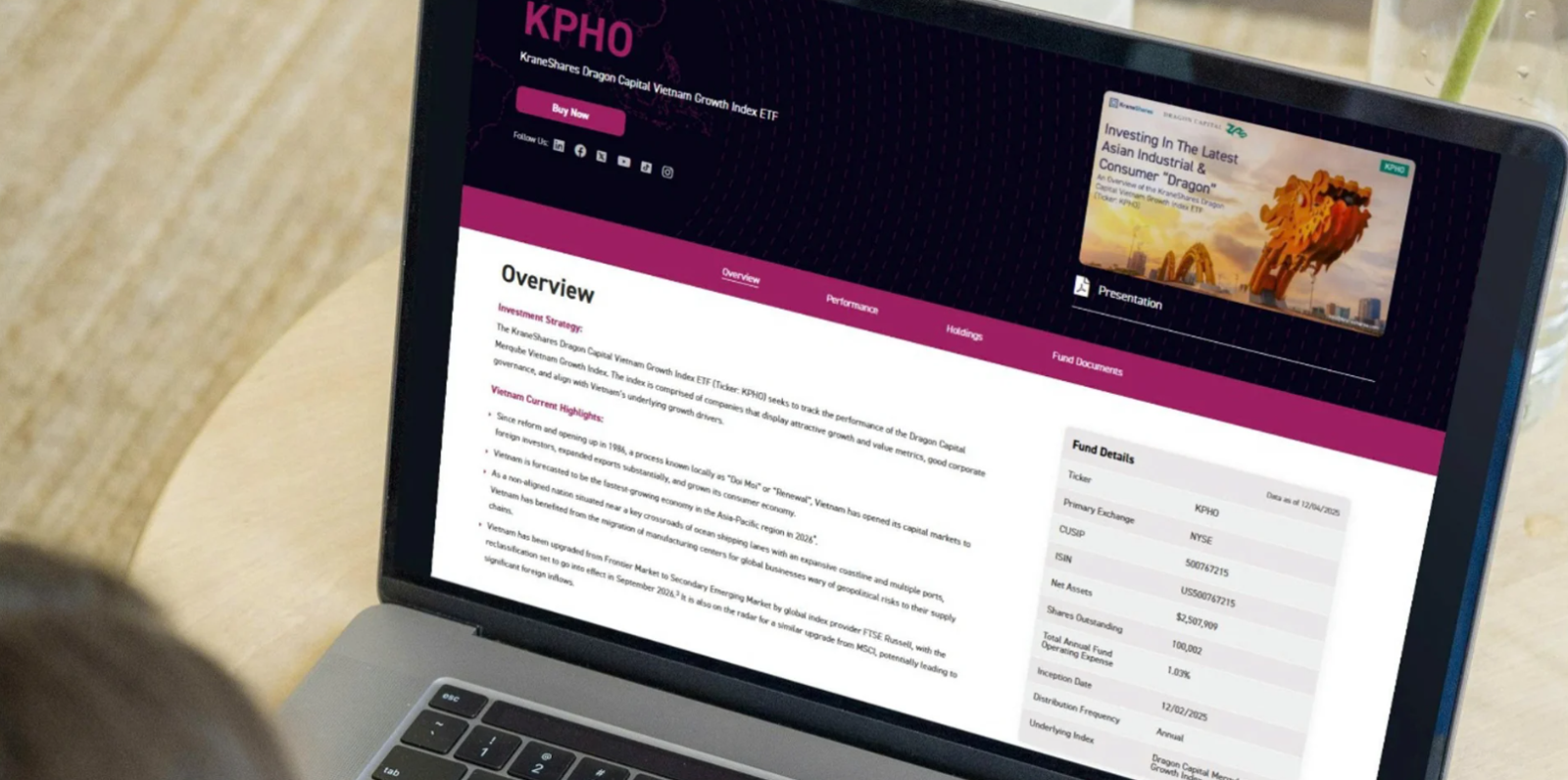 Từ nhu cầu thực tế của việc kết nối dòng vốn quốc tế với cơ hội tại Việt Nam, sự ra đời của các công cụ tài chính mới là bước đi tất yếu. Quỹ ETF KraneShares Dragon Capital Vietnam Growth Index (KPHO) vừa chính thức được niêm yết trên Sở Giao dịch Chứng khoán New York, Mỹ.