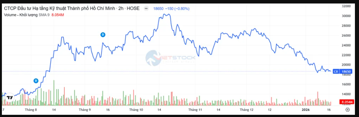 Cổ phiếu CII hiện giao dịch vùng 18.650 đồng/cp, giảm 38% so với vùng giá giữa tháng 10.
