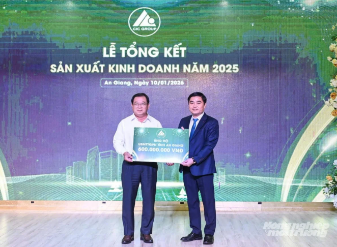 Ngày 10/1, nhân dịp tổng kết hoạt động sản xuất - kinh doanh năm 2025, Công ty CP Tập đoàn Tư vấn Đầu tư Xây dựng Kiên Giang - CIC Group đã trao tặng ủng hộ công tác an sinh xã hội, khuyến học với tổng số tiền 1,5 tỷ đồng. Trong đó, ủng hộ Ủy ban Mặt trận Tổ quốc Việt Nam tỉnh An Giang 600 triệu đồng nhằm triển khai các chương trình chăm lo hộ nghèo, gia đình chính sách và người yếu thế.