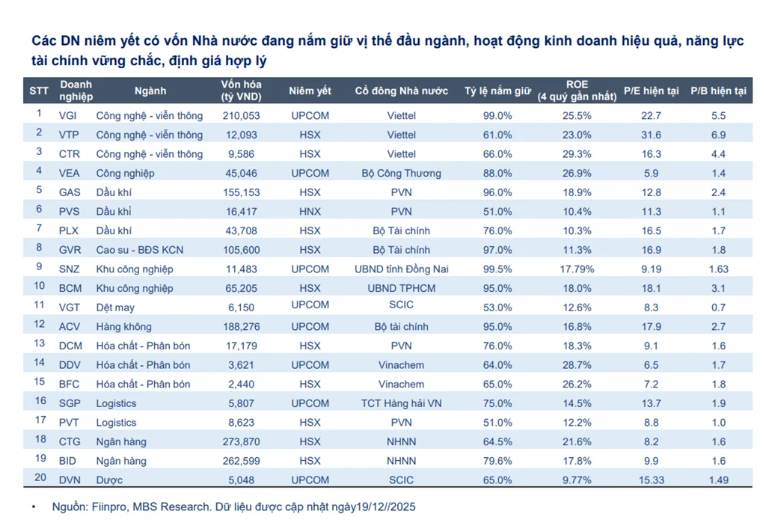 Theo Chứng khoán MBS, nhóm doanh nghiệp niêm yết có vốn nhà nước sẽ là tâm điểm mới cho năm 2026, đón chờ cú hích từ Nghị quyết về kinh tế Nhà nước.