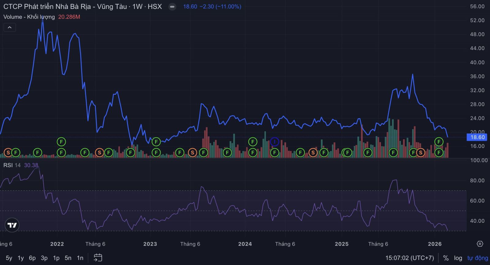 Cổ phiếu HDC kết phiên 6/3 ở giá 18.600 đồng/cp, thấp nhất kể từ tháng 4/2023. So với tháng 10/2025, mã đã giảm 50% giá trị.