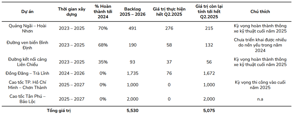 Trong báo cáo mới nhất, Chứng khoán ACB (ACBS) kỳ vọng rằng sự gia tăng chi tiêu đầu tư công của Chính phủ sẽ mang lại nhiều dự án cho LCG trong tương lai. Tính đến tháng 9/2025, giá trị trúng thầu chưa ghi nhận doanh thu (backlog) của LCG đạt gần 7.300 tỷ đồng, gấp gần 3 lần doanh thu xây lắp năm 2024. Dự kiến mảng này tiếp tục là nguồn đóng góp chính cho kết quả kinh doanh năm 2025-2026.