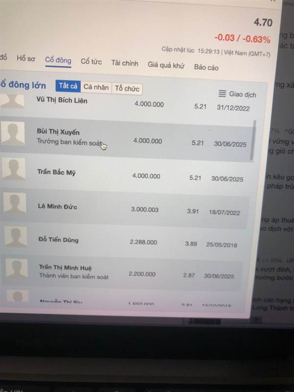 Minh Anh Nguyen Vào danh sách cổ đông kéo xuống thấy toàn mượn tài khoản đứng tên nắm lượng lớn cổ phiếu PHÁT HÀNH RIÊNG LẺ giá vốn 0 đồng để khi bán không phải đăng ký. Con HID này mà điều tra thì ban lãnh đạo 100% ...Thêm