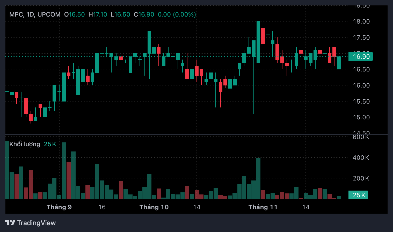 Diễn biến tích cực của cổ phiếu MPC trong bối cảnh VN-Index liên tục rung lắc.