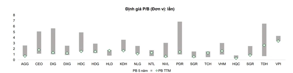 Đối với cổ phiếu, sau thời gian giảm giá liên tục thì mặt bằng P/B nhóm bất động sản cũng đã điều chỉnh về mức hợp lý hơn. Tuy nhiên, động lực tăng giá trong thời gian tới được dự báo mang tính phân hóa, không còn lan tỏa trên diện rộng, đòi hỏi sự sàng lọc kỹ lưỡng giữa các doanh nghiệp.