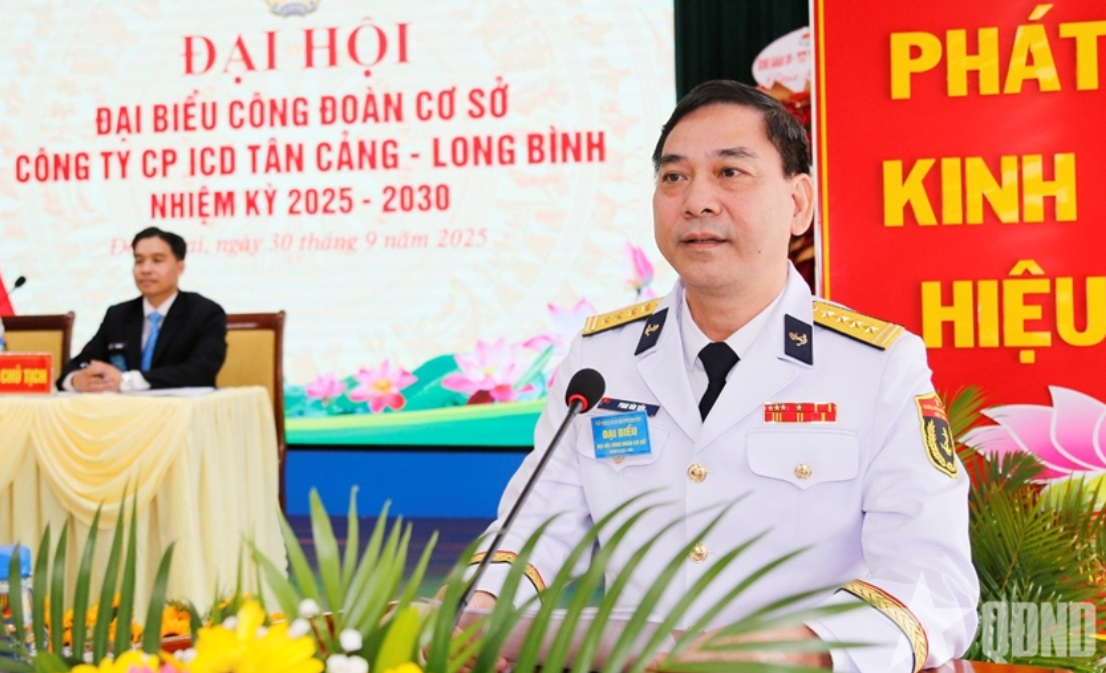 Ngày 30-9, tại tỉnh Đồng Nai, Công đoàn cơ sở Công ty cổ phần (CP) ICD Tân Cảng Long Bình (Binh đoàn 20 - Tổng công ty Tân Cảng Sài Gòn) tổ chức Đại hội đại biểu nhiệm kỳ 2025-2030. Đây là đại hội được chọn làm trước để rút kinh nghiệm trong toàn hệ thống. Thượng tá Nguyễn Hữu Mạnh, Phó chủ nhiệm Chính trị Binh đoàn 20 và Đại tá Phan Văn Tiến, Bí thư Đảng ủy, Chủ tịch HĐQT Công ty CP ICD Tân Cảng Long Bình dự, chỉ đạo.