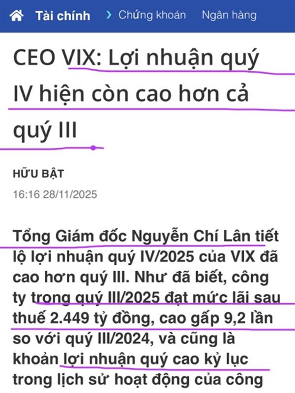 Cuối cùng là Ngân hàng TMCP Việt Nam Thịnh Vượng (mã VPB) duy trì tăng trưởng tín dụng cao (+28,5% đến 30/9/2025), chủ yếu từ mảng KHDN (+43%), giúp NIM đạt 5,4%; kỳ vọng giai đoạn 2025–2026 tăng trưởng 30–35%. Chất lượng tài sản cải thiện rõ với nợ xấu giảm còn 3,51% và nợ nhóm 2 chỉ còn 3,6%, giảm mạnh so với cuối 2024. Cổ phiếu đang giao dịch P/B 1,5x, thấp hơn mức ngành và đã điều chỉnh 25% từ đỉnh, tạo vùng định giá hấp dẫn cho trung–dài hạn.