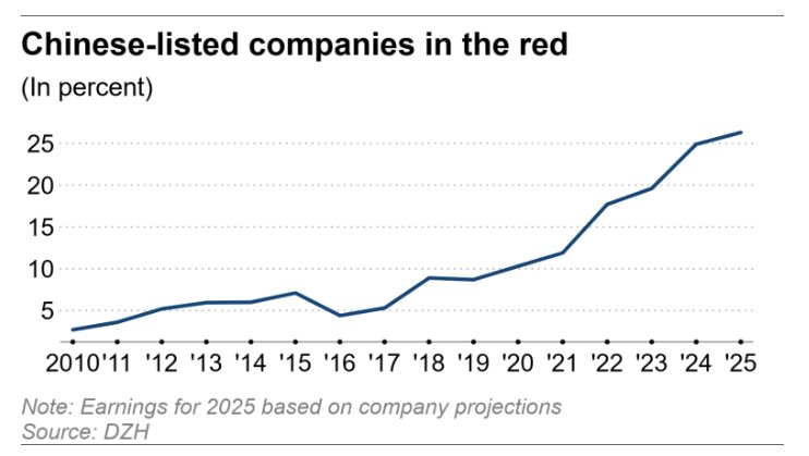 Tỷ lệ các công ty Trung Quốc rơi vào tình trạng thua lỗ đã tăng đều đặn kể từ năm 2020. Theo Nikkei, bên cạnh việc siết chặt cho vay bất động sản, Trung Quốc đã ưu tiên xây dựng công nghệ sản xuất và tăng cường sản lượng hơn là kích thích tiêu dùng. Hiện các chính sách này chưa có dấu hiệu thay đổi.