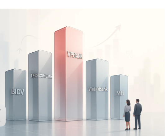 Nổi bật nhất là VPBank vươn lên dẫn đầu hệ thống, đạt 2.392 tỷ đồng, tăng mạnh 78,1% so với quý trước, qua đó tăng 4 bậc để chiếm vị trí số 1. Techcombank lùi xuống thứ 2 dù vẫn tăng 7,5% lên 2.266 tỷ đồng. Hai ngân hàng quốc doanh BIDV và VietinBank giữ nguyên vị trí thứ 3 và thứ 4, với biến động trái chiều: BIDV giảm 8,1%, còn VietinBank tăng 10,7%.