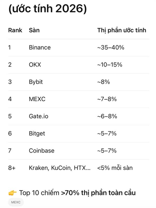 Tốp các sàn có thị phần cao ở thị trường tiền số