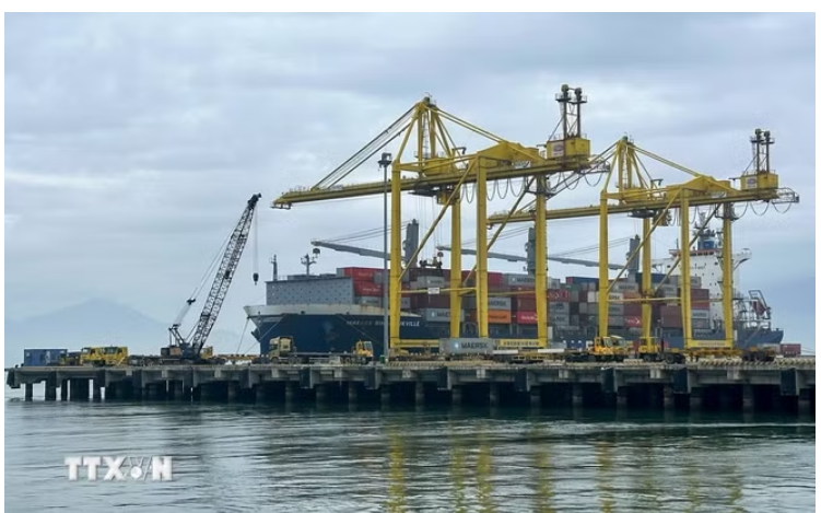Bốc xếp hàng container tại cảng Tiên Sa. (Ảnh: Trần Lê Lâm/TTXVN)