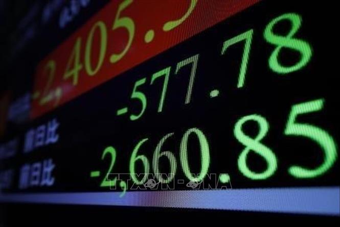 Bảng chỉ số chứng khoán tại Tokyo, Nhật Bản. Ảnh: Kyodo/TTXVN