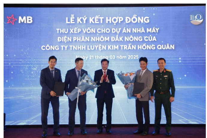 Vào tháng 3/2025, MB đã ký kết hợp đồng thu xếp vốn cho Dự án Nhà máy điện phân nhôm Đắk Nông của Công ty TNHH Trần Hồng Quân.