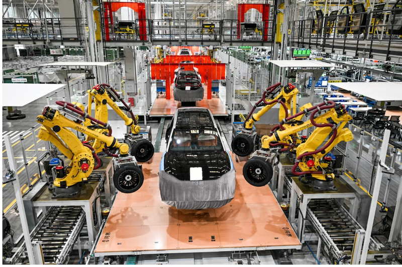 Các cánh tay robot thông minh lắp lốp cho xe ô tô tại nhà máy Seres Super Factory ở Trùng Khánh, Trung Quốc. Ảnh: VCG/Getty Images