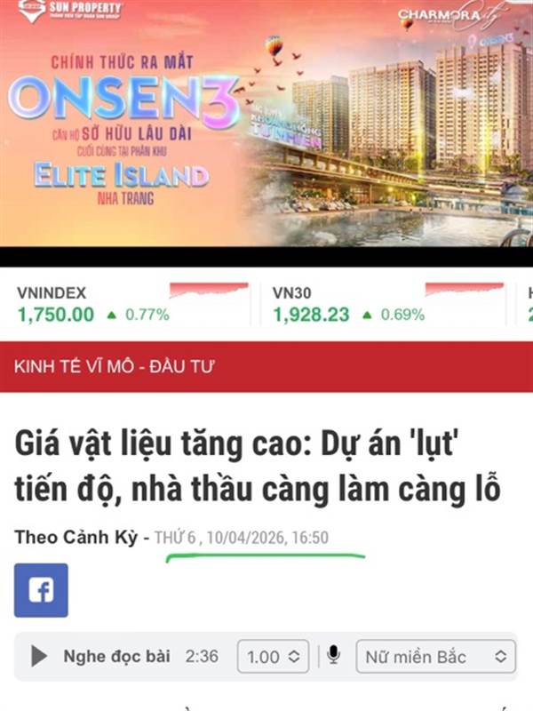 giá vật liệu tăng, ĐTC đang trì trệ chứ mà cú hích