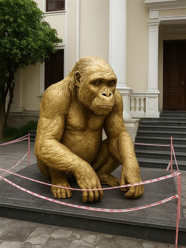 đang đúc tượng con khỉ già đặt ở đấy sắp ra lò rồi .