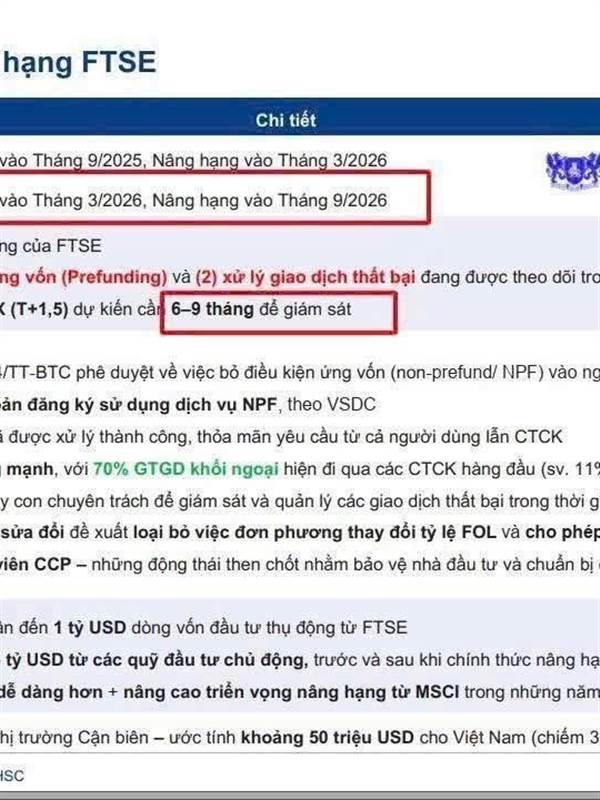 Mua Đáy Bán Đỉnh Rồi m nghe theo HSC hay nghe theo FTSE vụ nâng hạng :)). Được chính thức nâng hạng có hiệu lực vào ngày 21/09/2026, tháng 03/2026 review.