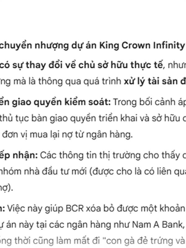 con này bán kingcrow ìniniti 4500 tỉ rồi , không biết tái cơ cấu tới đâu rồi