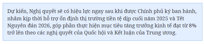 Đề xuất này nhằm bình ổn thị trường tiền tệ, hỗ trợ tăng trưởng kinh tế và nâng cao hiệu quả phối hợp chính sách tài khóa - tiền tệ trong giai đoạn cao điểm cuối năm 2025 và Tết Nguyên đán 2026.