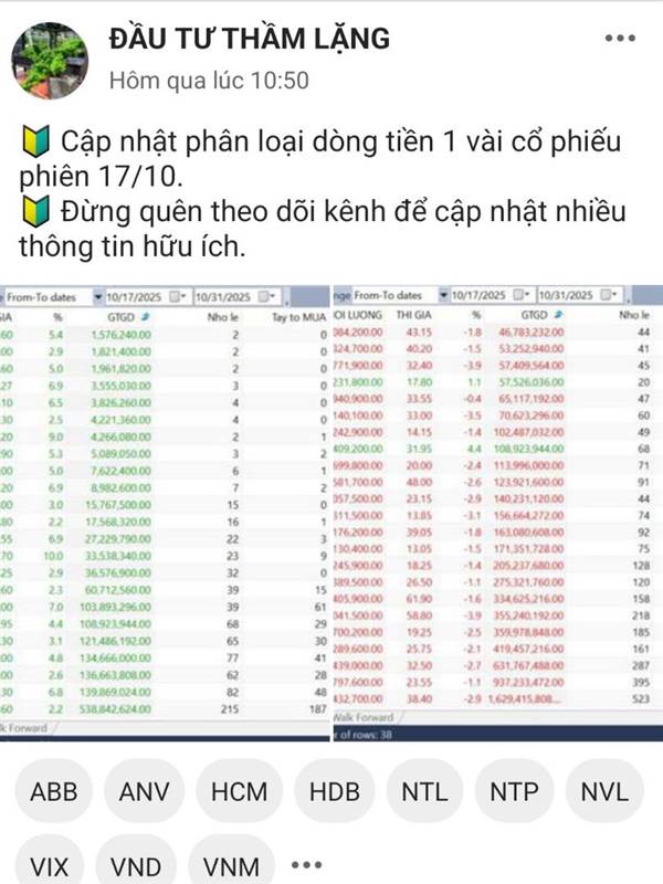 🔰 Phiên 17/10 giá trị gd 190 tỷ (của nhỏ lẻ 106 tỷ, tay to mua 35 tỷ, tay to bán 49 tỷ)