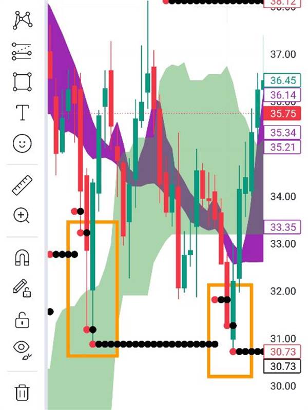 Ông bố 2 con có 2 dấu hiệu nhận diện: thứ nhất chỉnh về đáy lúc tháng 6/25. Thứ hai là để ý nến nó tiệm cận chấm bi đỏ đang vùng giá 35.3 (thường chỗ này nó chỉnh thì 3_5% nữa là cũng hồi).