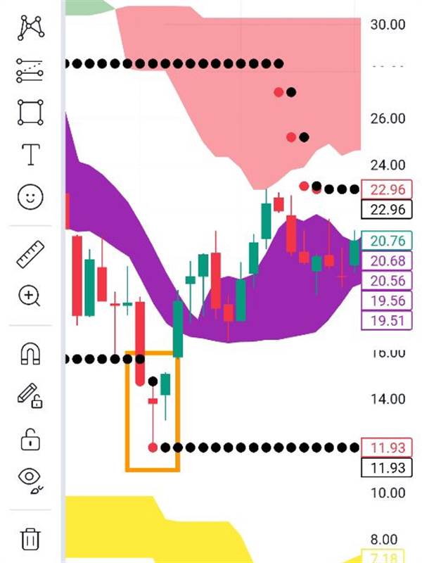 Trong nhịp chỉnh mà nến nó chạm mấy chấm bi đỏ này là cũng sắp tạo đáy xong