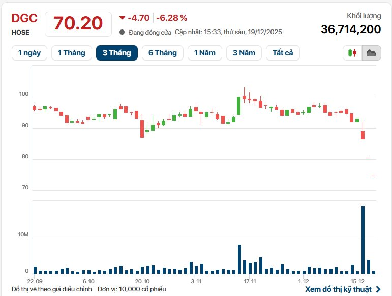 Cổ phiếu DGC tiếp tục bị nhà đầu tư bán tháo, với gần 10% vốn được sang tay trong phiên 19/12.