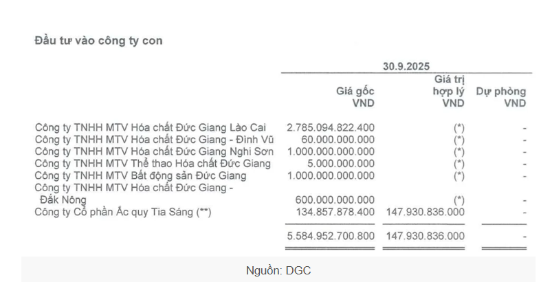 Tập đoàn Hóa chất Đức Giang là một trong những công ty niêm yết sở hữu bức tranh tài chính đẹp. Quy mô tổng tài sản tập đoàn đến cuối quý III đạt 19.424 tỷ đồng, riêng khoản đầu tư nắm giữ đến ngày đáo hạn là 12.761 tỷ đồng, chiếm 66%. Tài sản cố định hữu hình nguyên giá 5.073 tỷ đồng nhưng đã khấu hao 3.090 tỷ đồng.