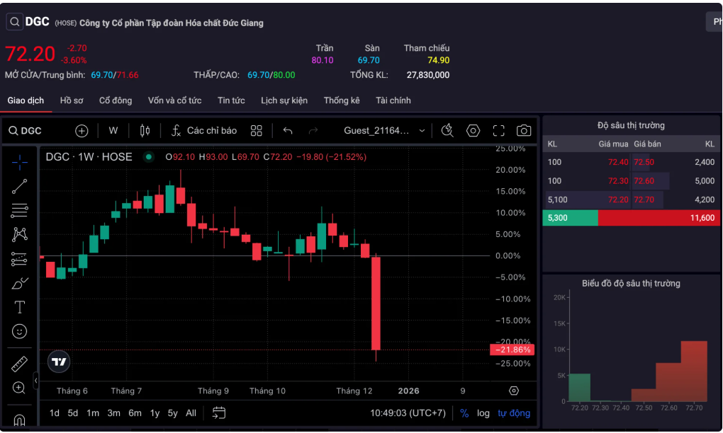 Trái ngược với những khuyến nghị đầy lạc quan, những nhà đầu tư lựa chọn dồn tỷ trọng lớn, thậm chí “all-in” vào cổ phiếu DGC đã phải đối mặt với các phiên giao dịch đầy áp lực, tâm lý hoảng loạn uất hiện, đặc biệt với các tài khoản sử dụng đòn bẩy cao và bị siết margin đột ngột.