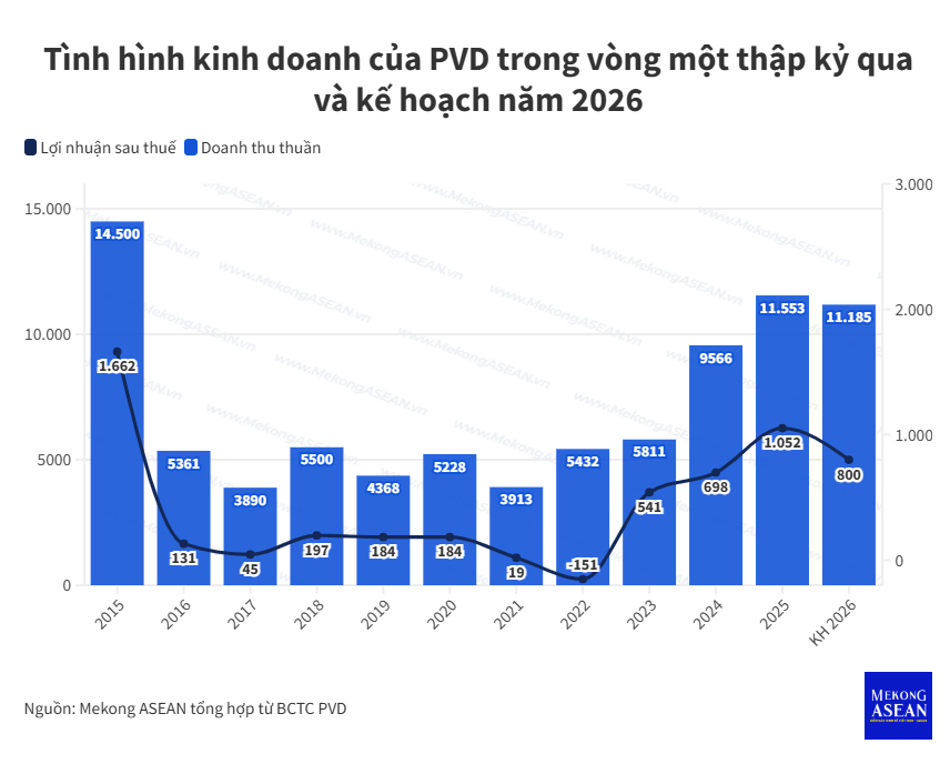 Báo cáo với các cổ đông tại đại hội, năm 2026, PVD đặt mục tiêu doanh thu tăng nhẹ, dự kiến xấp xỉ 11.200 tỷ đồng, song chỉ tiêu lợi nhuận lại được điều chỉnh giảm 23% so với thực hiện năm trước, lùi về mức 800 tỷ đồng. Kế hoạch này được đánh giá là khá cẩn trọng, nhất là khi doanh nghiệp vừa trải qua năm 2025 với kết quả kinh doanh rực rỡ nhất trong vòng 10 năm qua.