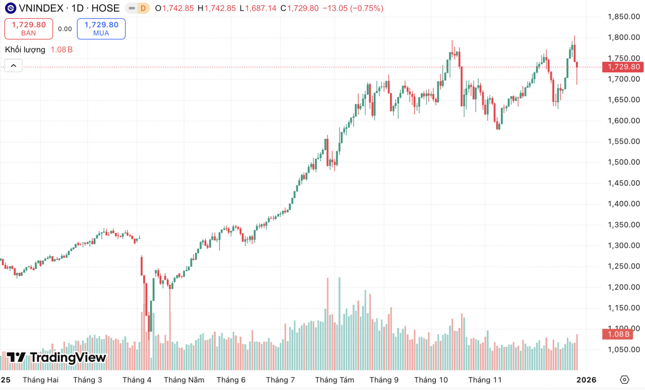 Diễn biến thị trường chứng khoán từ đầu năm 2025 - Nguồn: Trading View